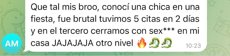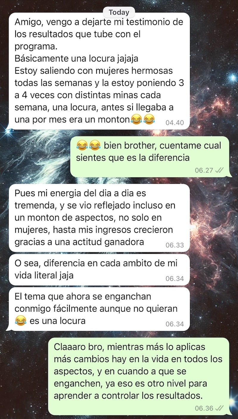 Después de trabajar con nuestro método, su energía social cambió por completo. Empezó a proyectar seguridad, presencia y una vibra auténtica que las mujeres notan al instante.